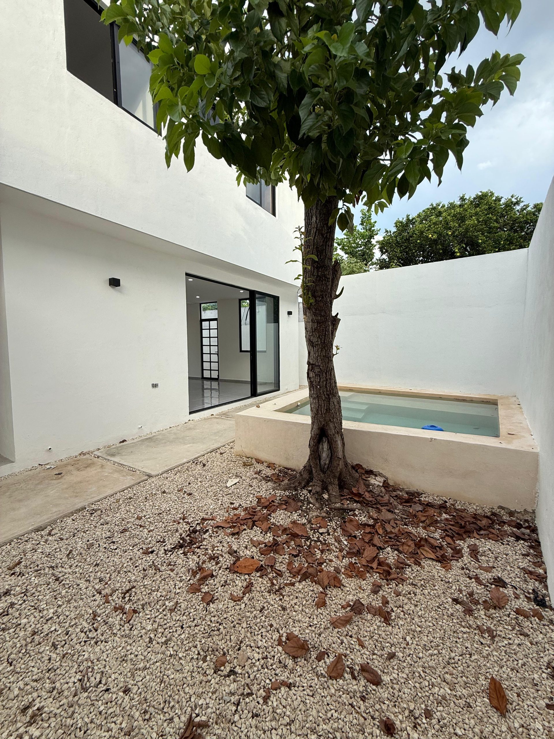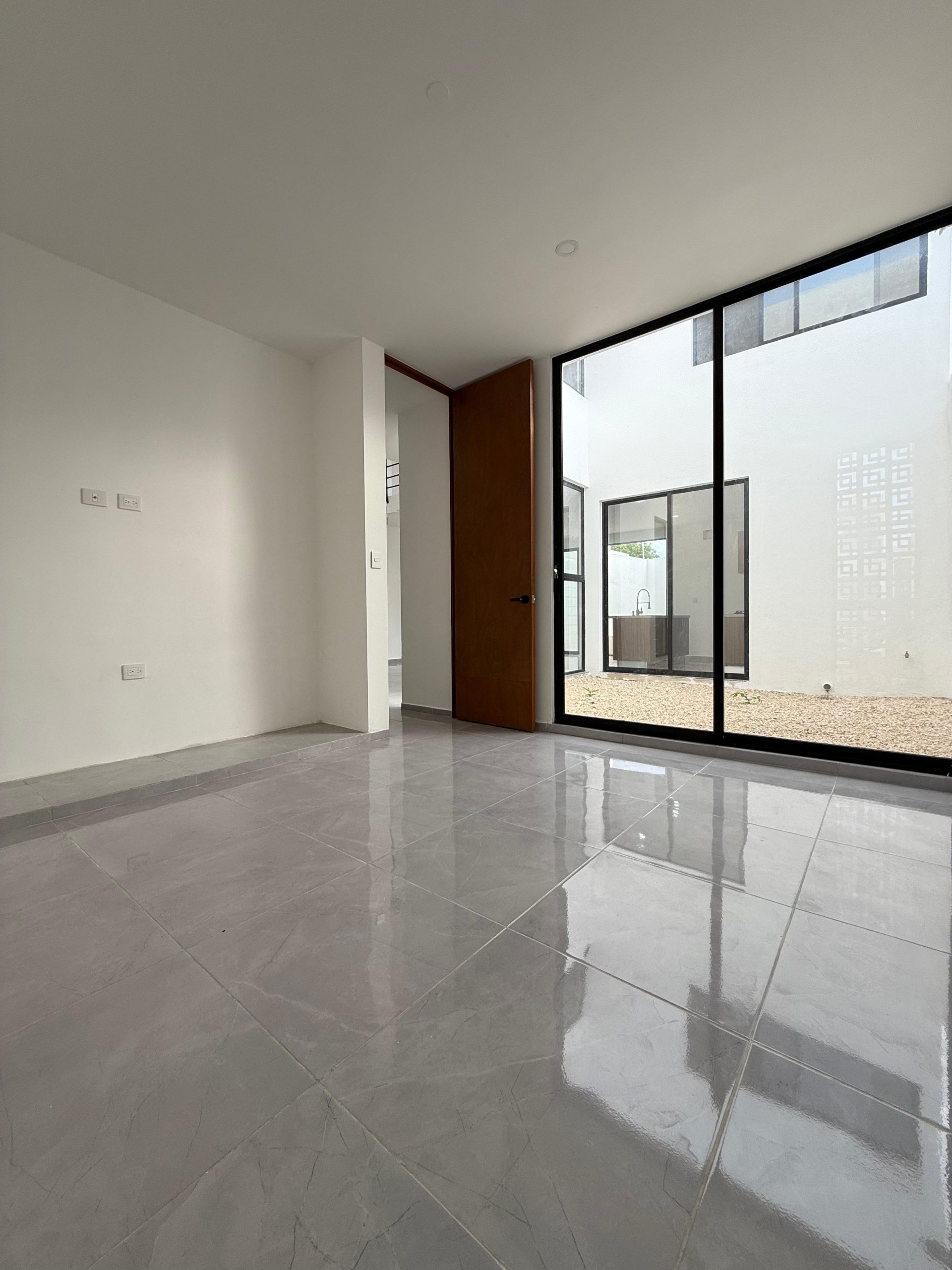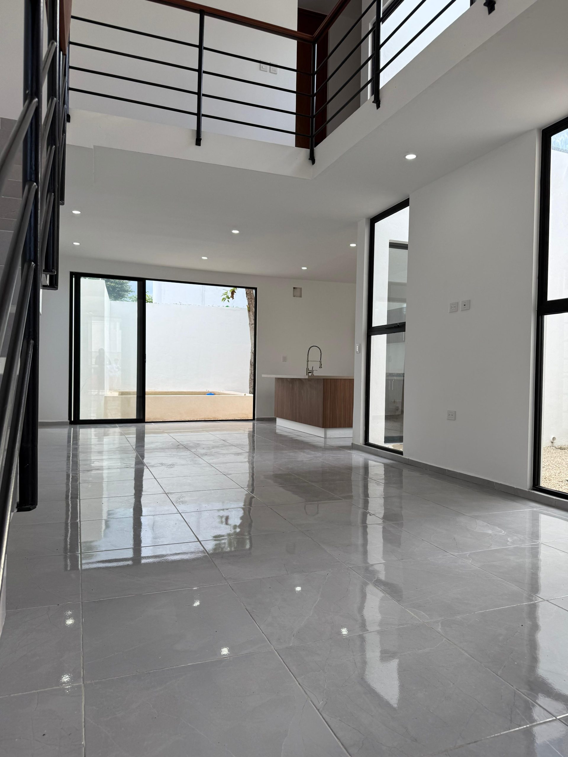 En planta baja cuenta con una recámara de múltiples usos, ideal para huéspedes, oficina o sala de TV; además de sala a doble altura con vista al jardín interior y alberca.