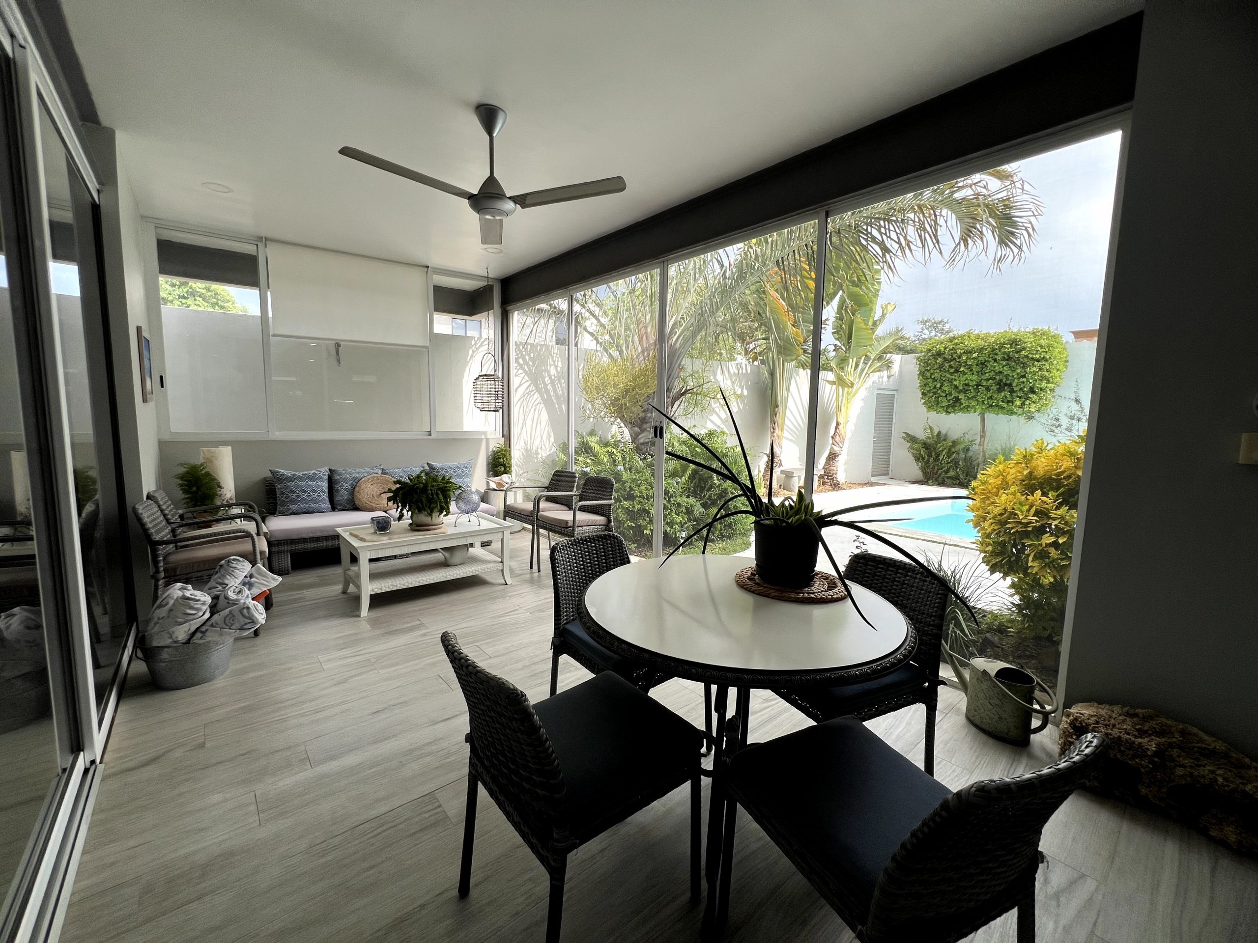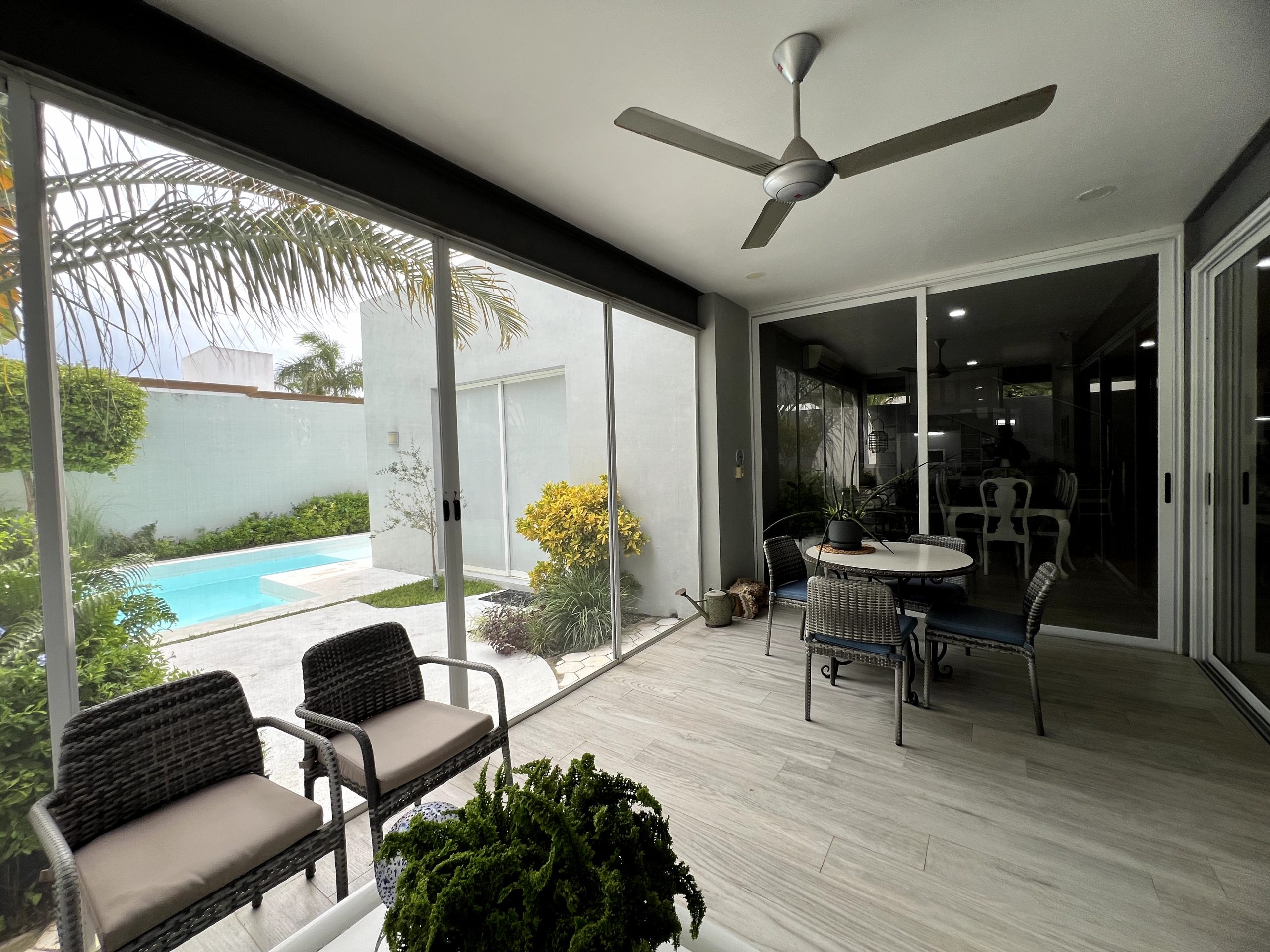 Terraza techada con mosquiteros y acceso al área social